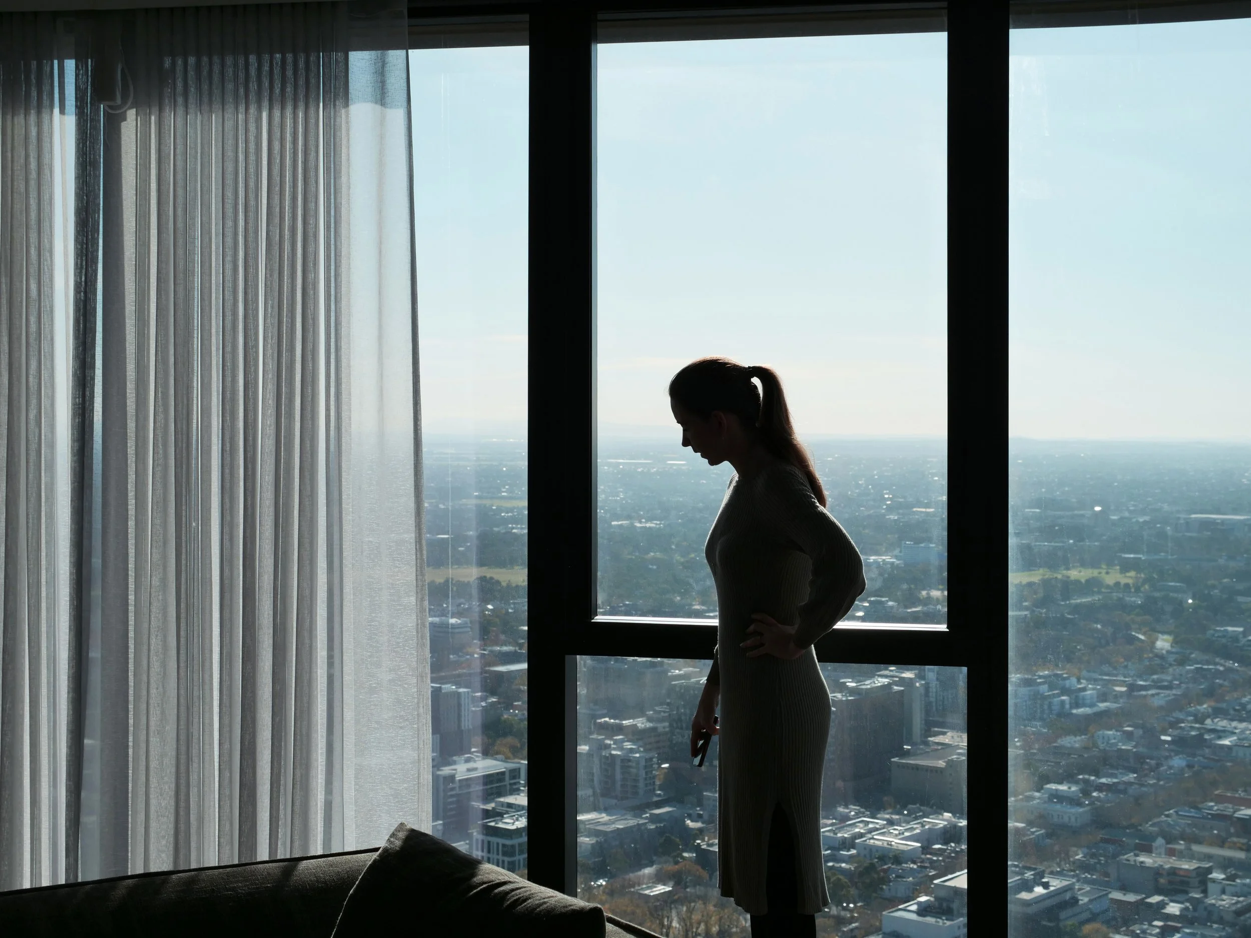 Cloudtop is a reimagining of a penthouse residence within Sapphire by the Gardens — an architectural landmark on the northern edge of Melbourne’s Hoddle Grid, overlooking Carlton Gardens. Defined by its sweeping golden skybridge, the development is one of the city’s most recognisable towers, and the residence commands one of the finest outlooks in Melbourne.